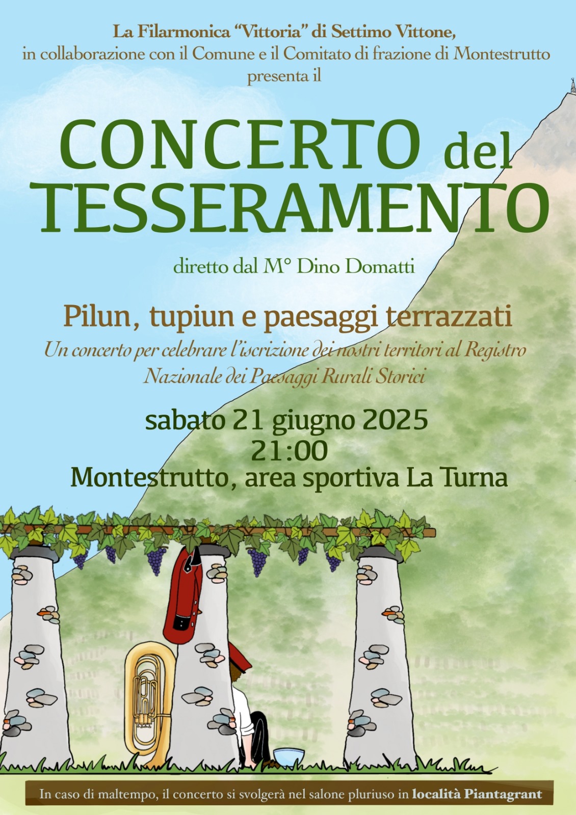 In caso di maltempo il concerto si terrà al Salone Piantagrant.